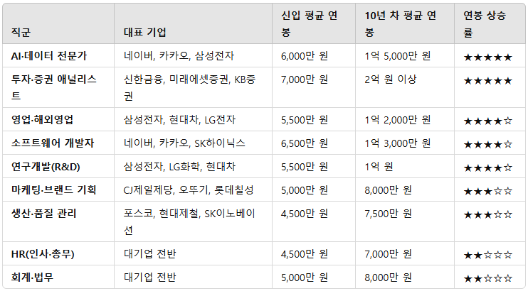 📌 대기업 직군별 연봉 격차 비교 (2024년 기준)