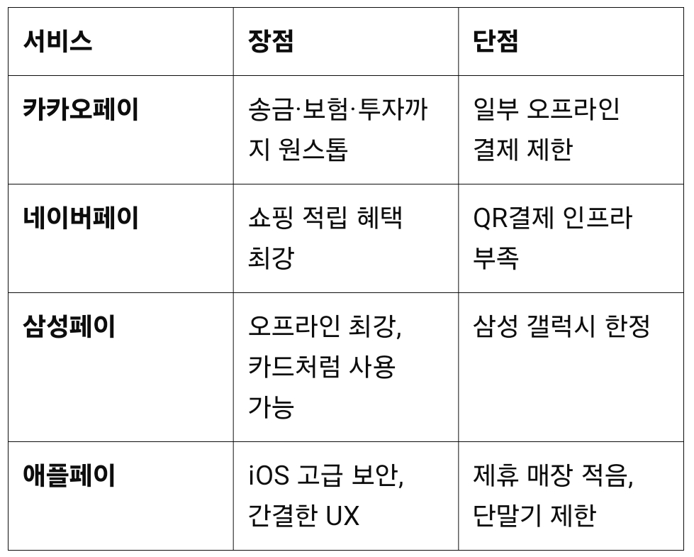 4. 간편결제 플랫폼별 장단점 비교
