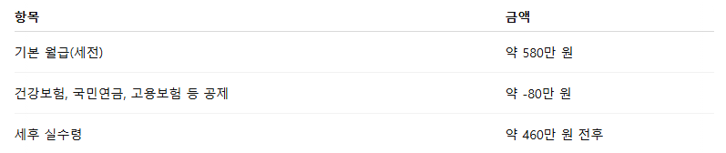 - 세후 실수령 약 440~470만 원대