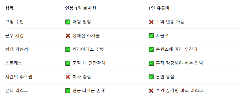 - 혼합형 모델도 가능: 직장 + 사이드 콘텐츠 운영!